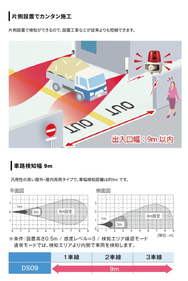 ●セット品のマイクロウェーブセンサDS09との組合せで車両検知が可能です。