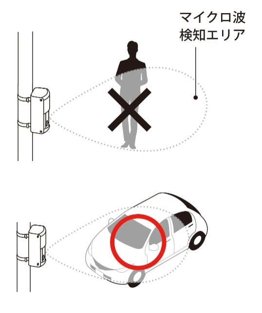 マイクロ波の反射を利用しており、人と車の反射の違いから、
