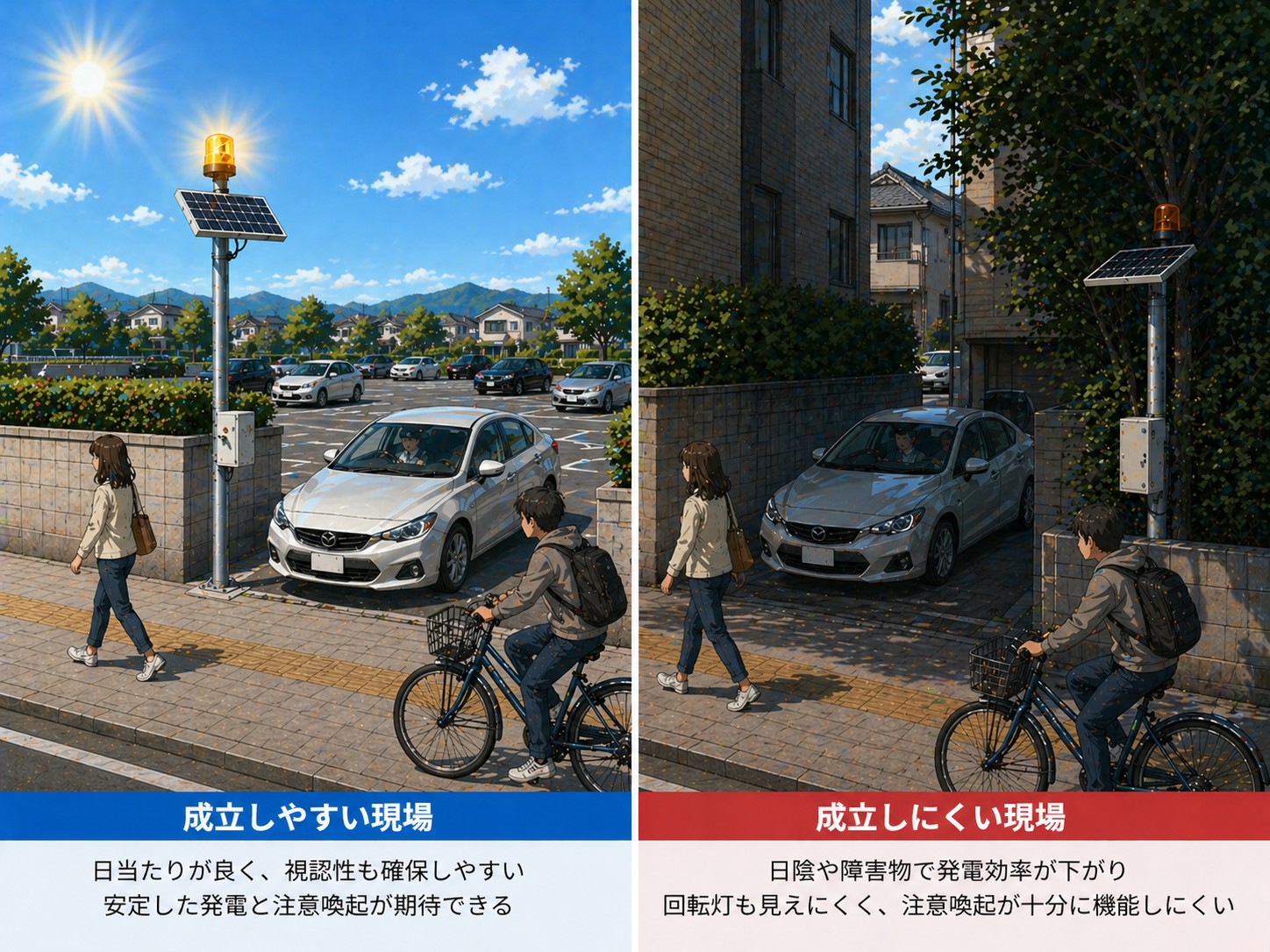 駐車場出入口における回転灯の導入は、「危ない気がする」という感覚ではなく、具体的な条件で判断する必要があります。